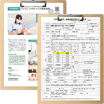 採用の定番方法は歯科衛生士学校・大学歯学部に求人票を送ること。歯科系求人に特化したノウハウを持つ当社だからこそ、「採用競争に勝つ」求人票を作成することができます。